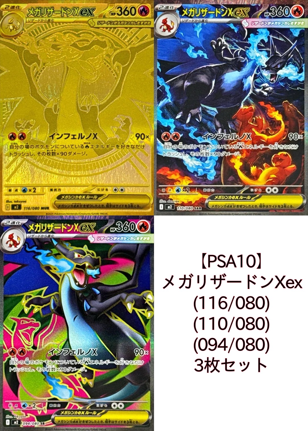 【PSA10】メガリザードンXex3枚セット(116/080)(110/080)(094/080) ※銀行振り込みorコンビニ支払い